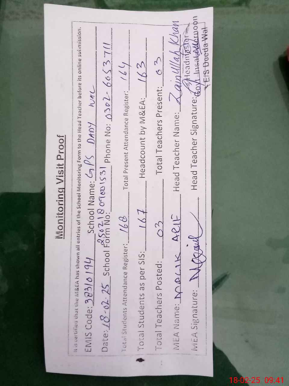 | EMIS Code: 38310194 | Name of School: GPS DADY WAL | |||