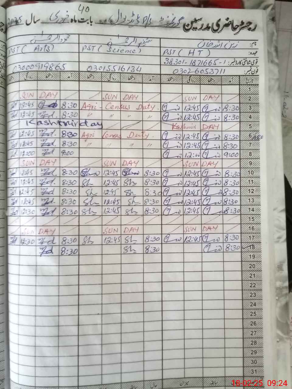| Name: ZA**** UL**** KH**** Designation: (School Headmaster's/Headmistress's) PST Phone/Cell Number: 03**** |