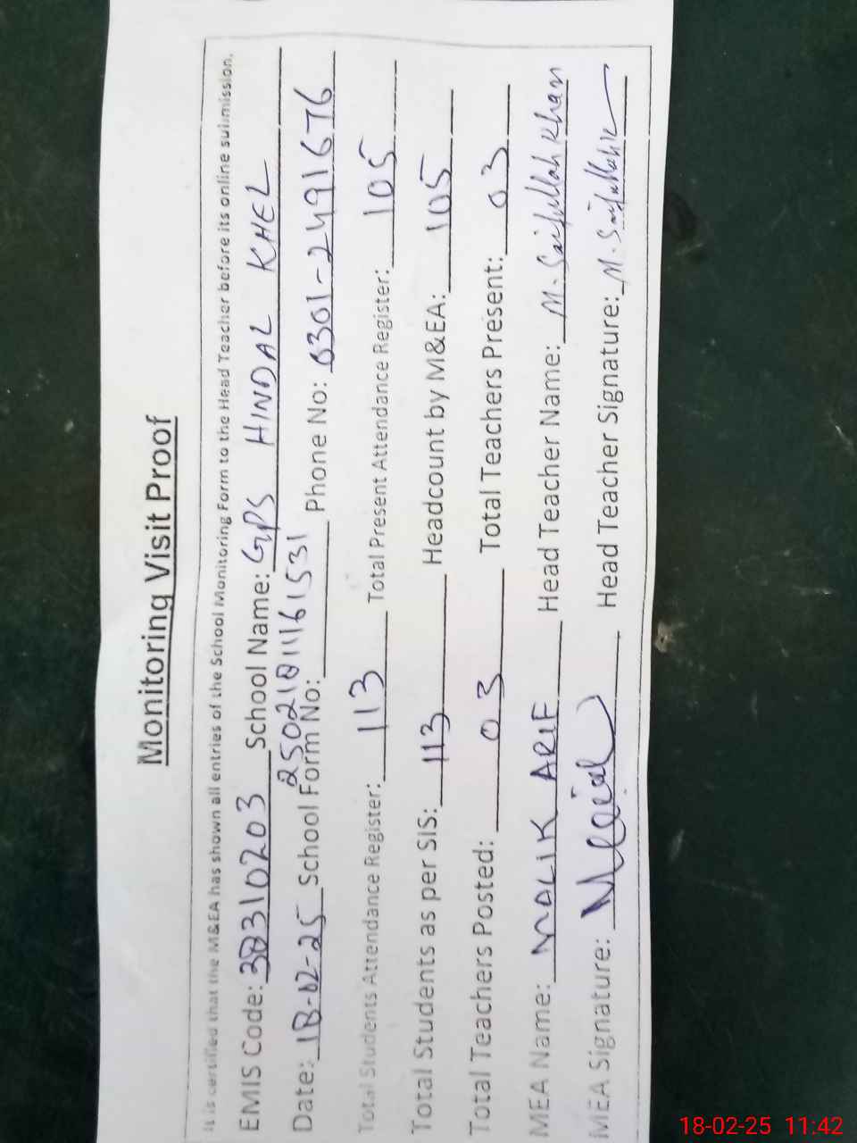 | EMIS Code: 38310203 | Name of School: GPS HINDAL KHEL | |||
