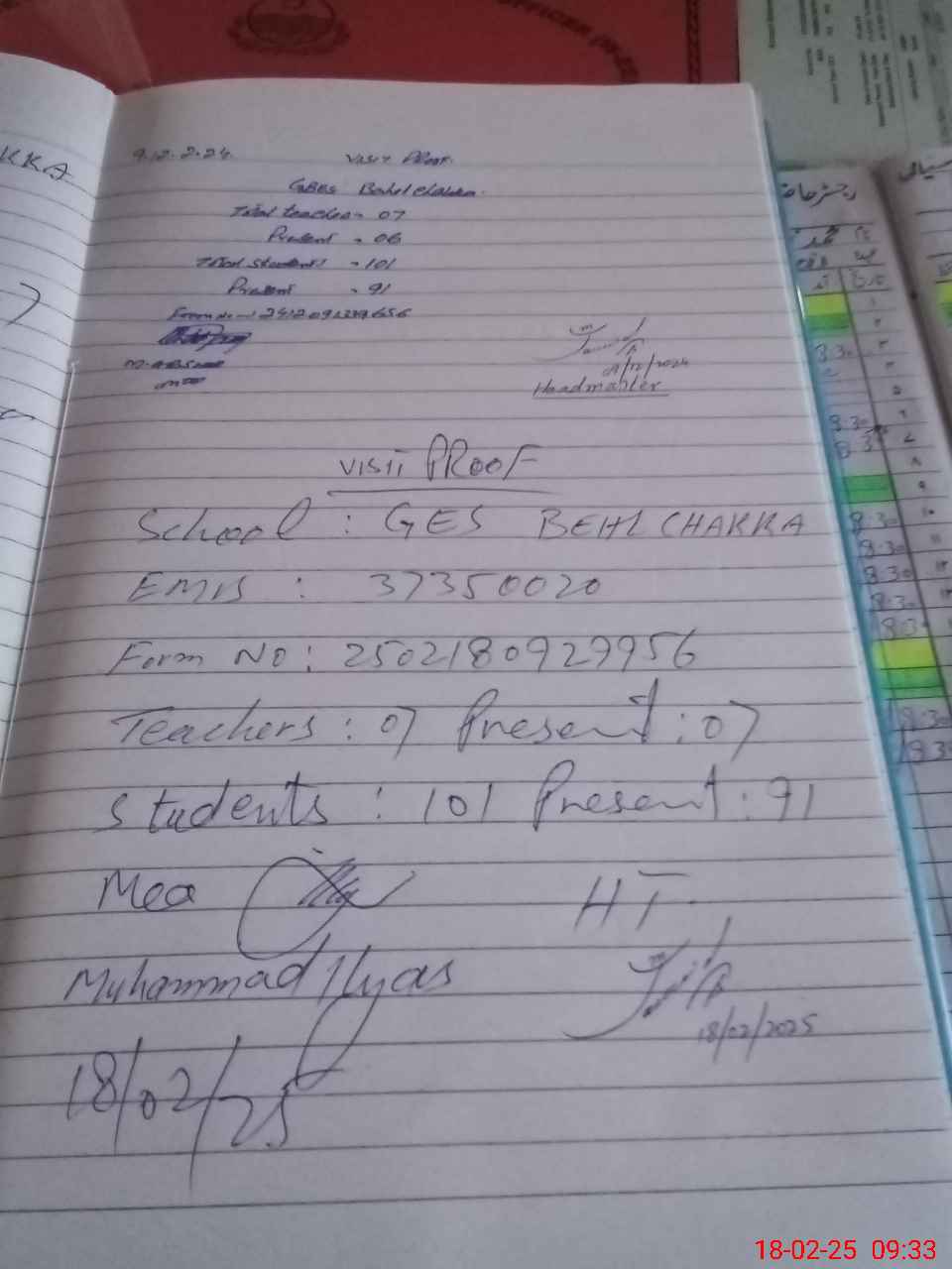 | EMIS Code: 37350020 | Name of School: GES BEHL CHAKKA | |||