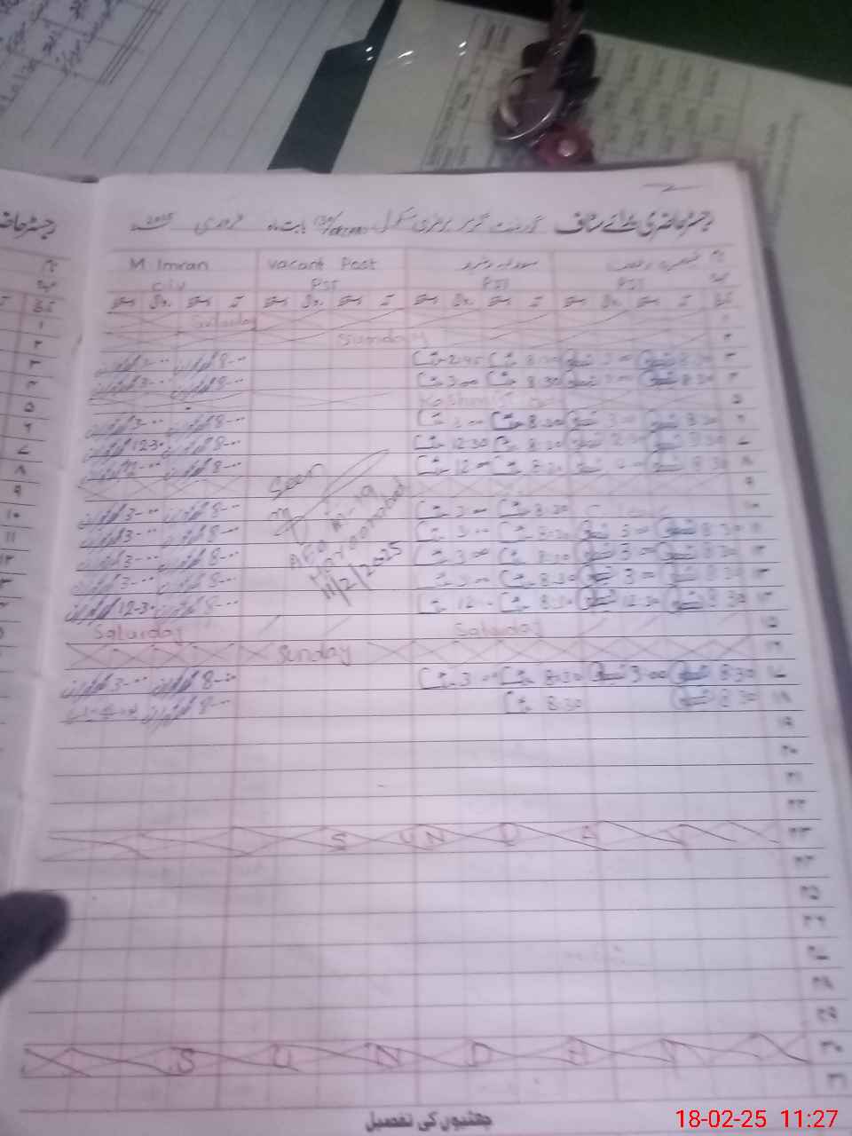 | CNIC | Full Name | Designation | R/C | Absence During Last Calender Month |