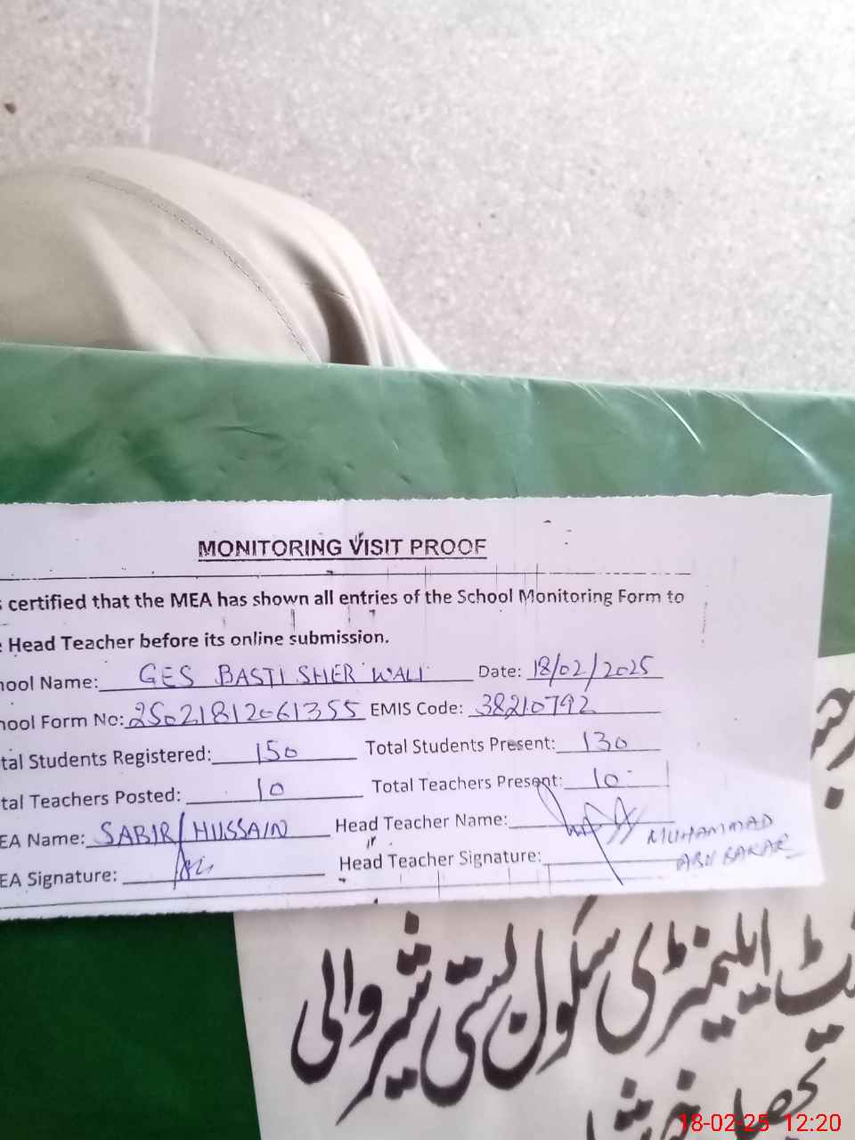 | EMIS Code: 38210792 | Name of School: GES BASTI SHER WALI | |||