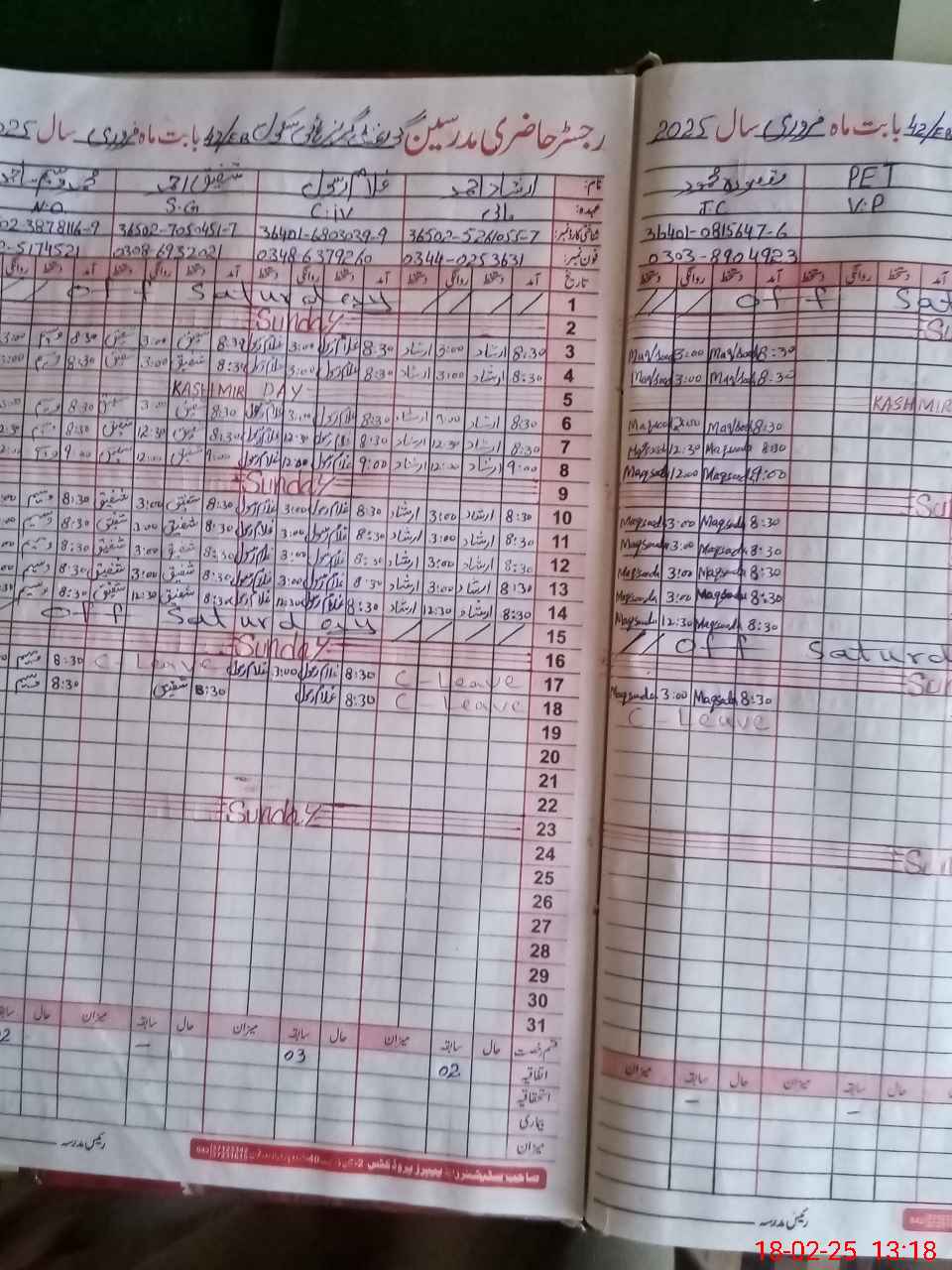 | Name: BU**** HA**** Designation: (School Headmaster's/Headmistress's) SST (GENERAL) Phone/Cell Number: 03**** |