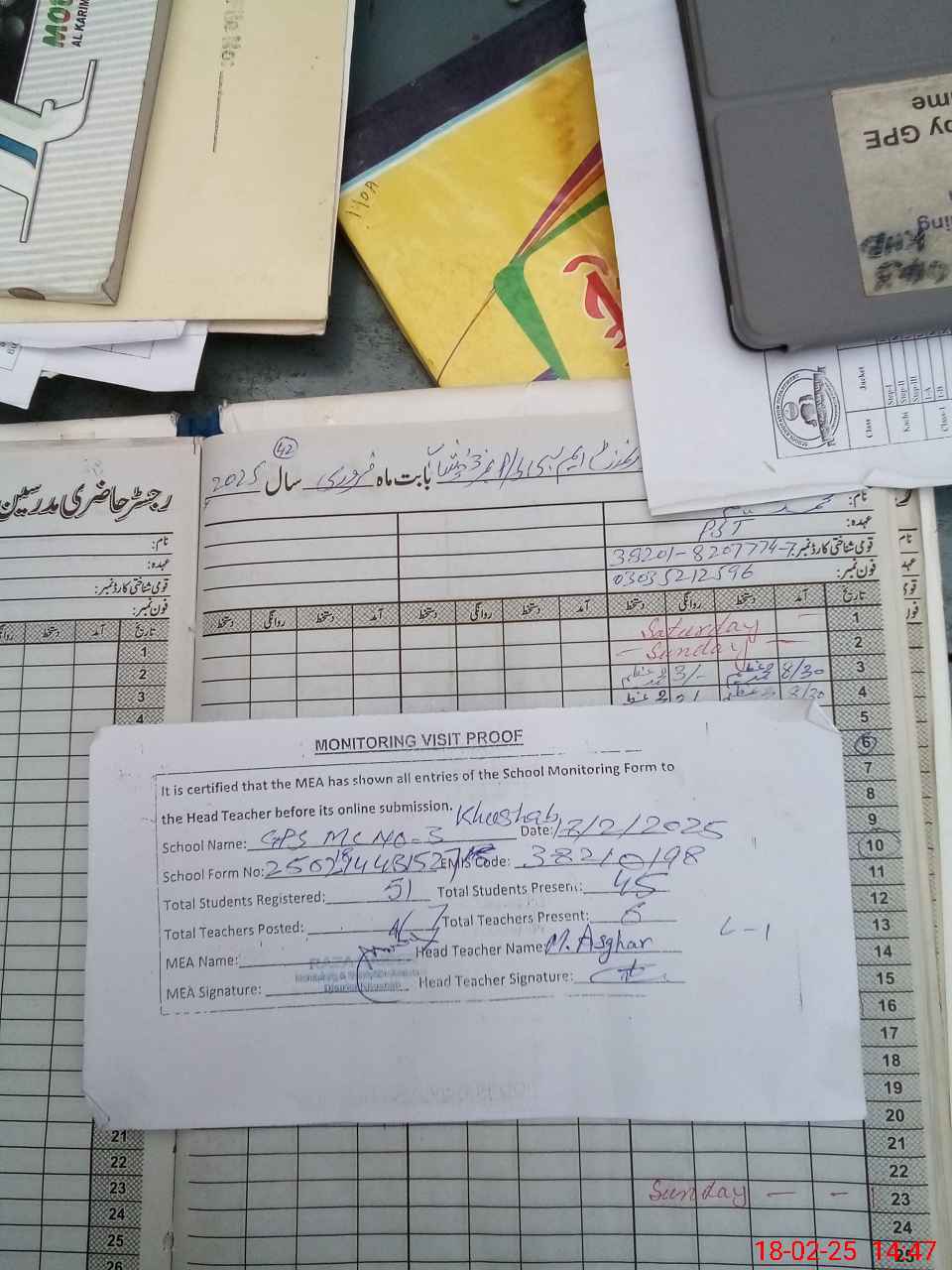 | EMIS Code: 38210198 | Name of School: GPS MC NO. 3 KHUSHAB MOHALLAH HAKIMAN WALA | |||