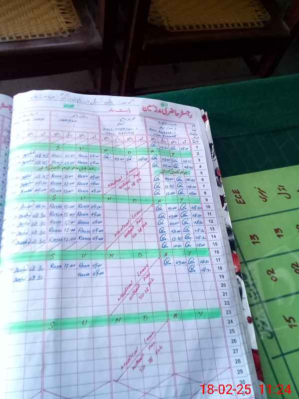 | CNIC | Full Name | Designation | R/C | Absence During Last Calender Month |