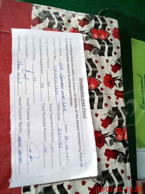 | EMIS Code: 31310155 | Name of School: GPS GHULAM NABI LAR | |||
