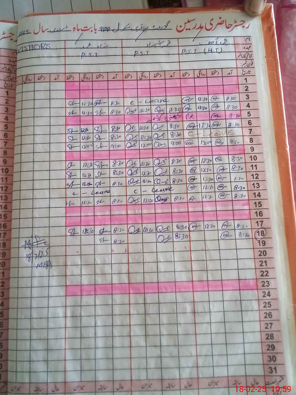 | CNIC | Full Name | Designation | R/C | Absence During Last Calender Month |