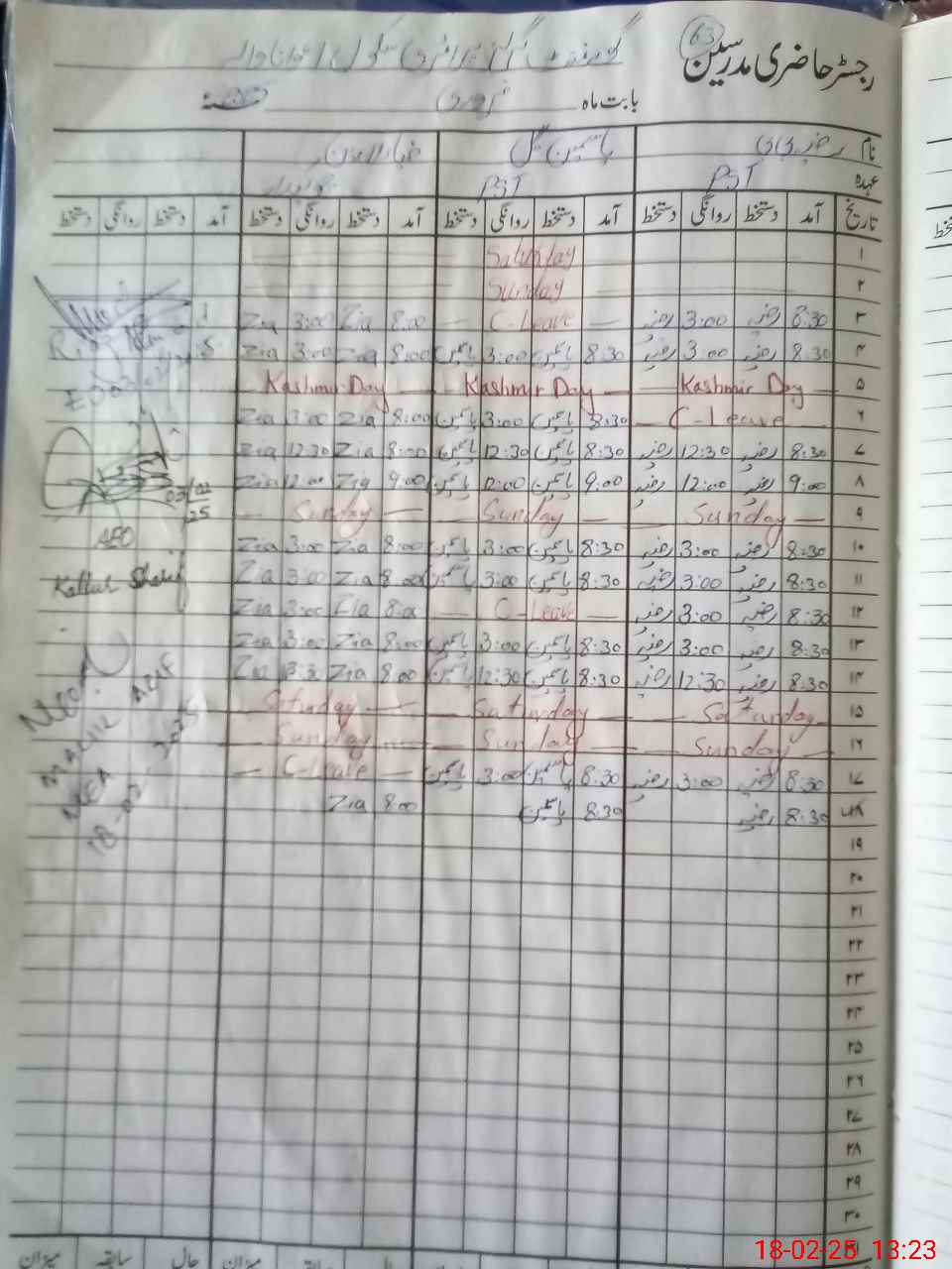 | CNIC | Full Name | Designation | R/C | Absence During Last Calender Month |