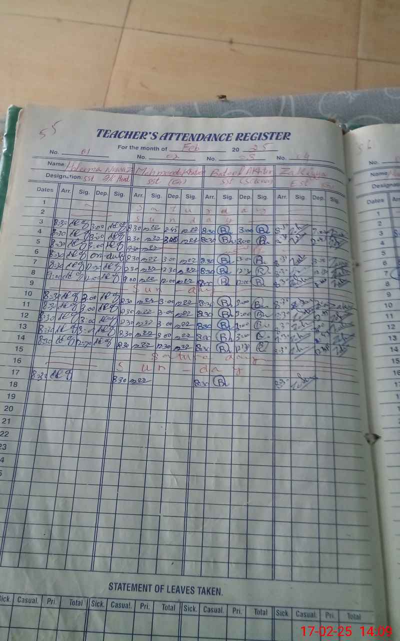 | Name: Ha**** Na**** Designation: (School Headmaster's/Headmistress's) S.S.T.(GEN) Phone/Cell Number: 03**** |