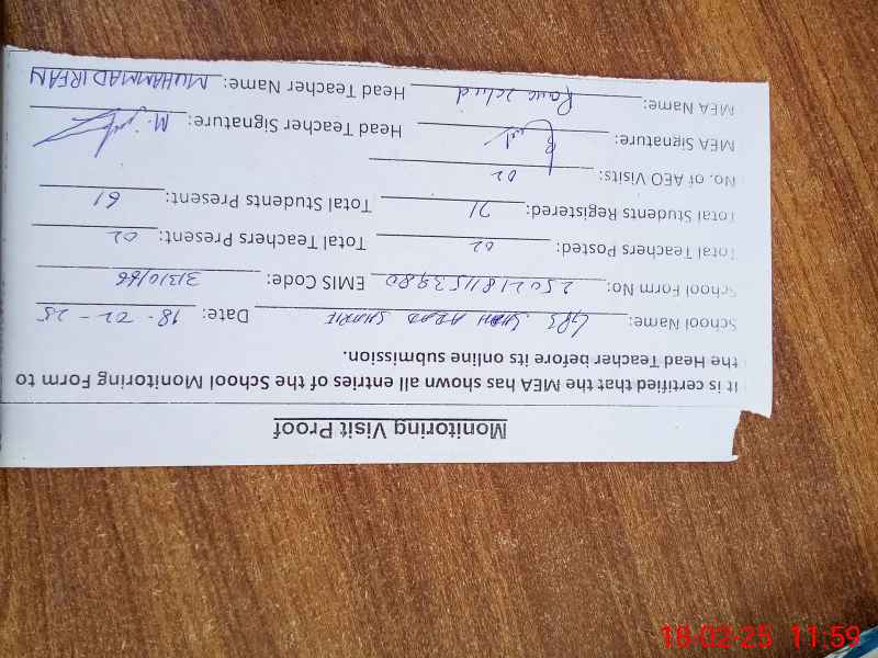 | Name: Mu**** Ir**** Designation: (School Headmaster's/Headmistress's) PST Phone/Cell Number: 03**** |