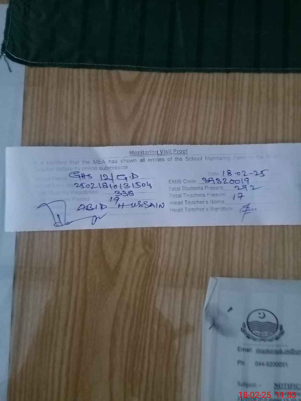 | EMIS Code: 39320019 | Name of School: GHS 12/ G.D | |||