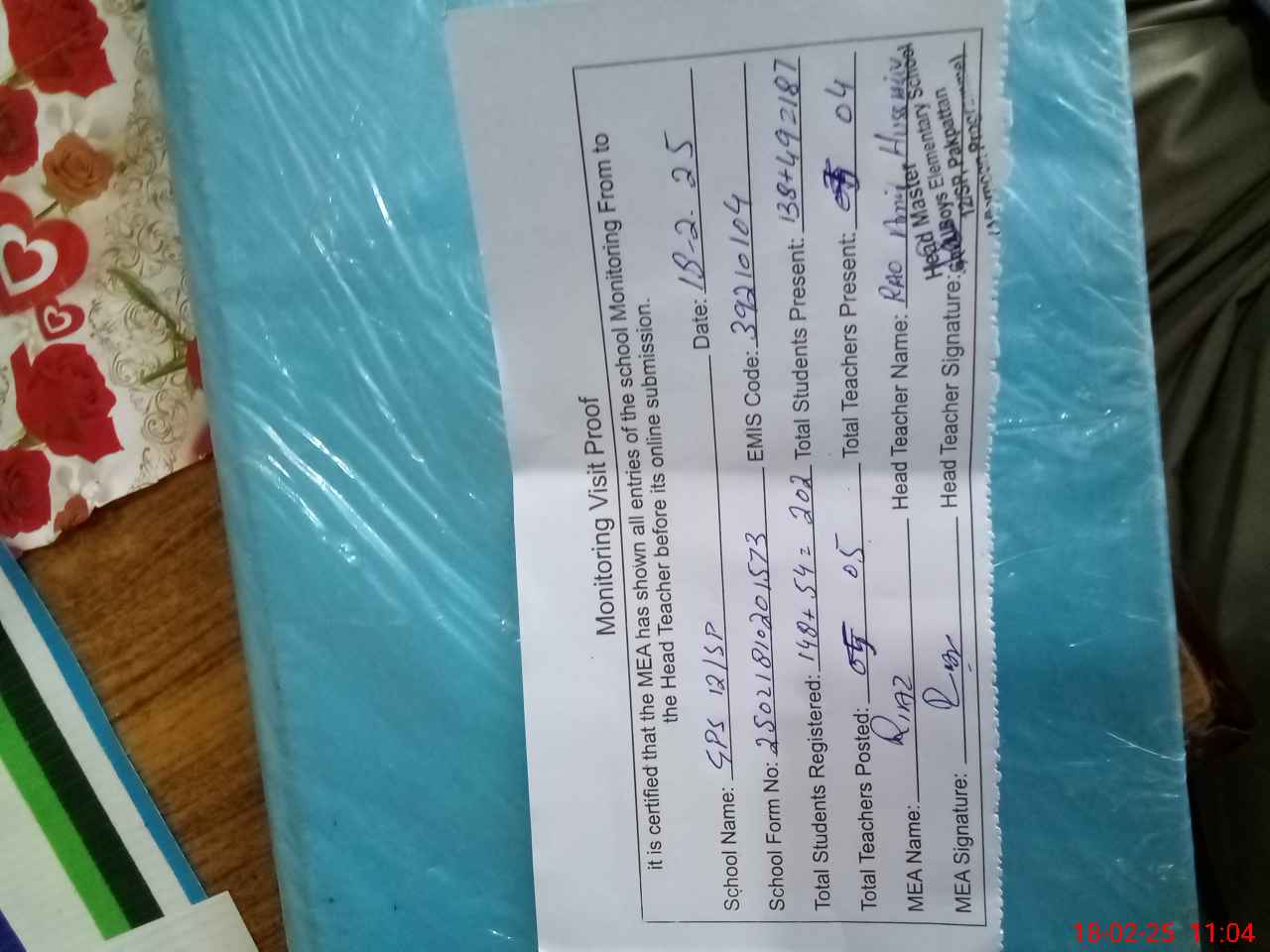 | EMIS Code: 39210104 | Name of School: GPS 12/SP P.O 8.S.P PAKPATTAN | |||