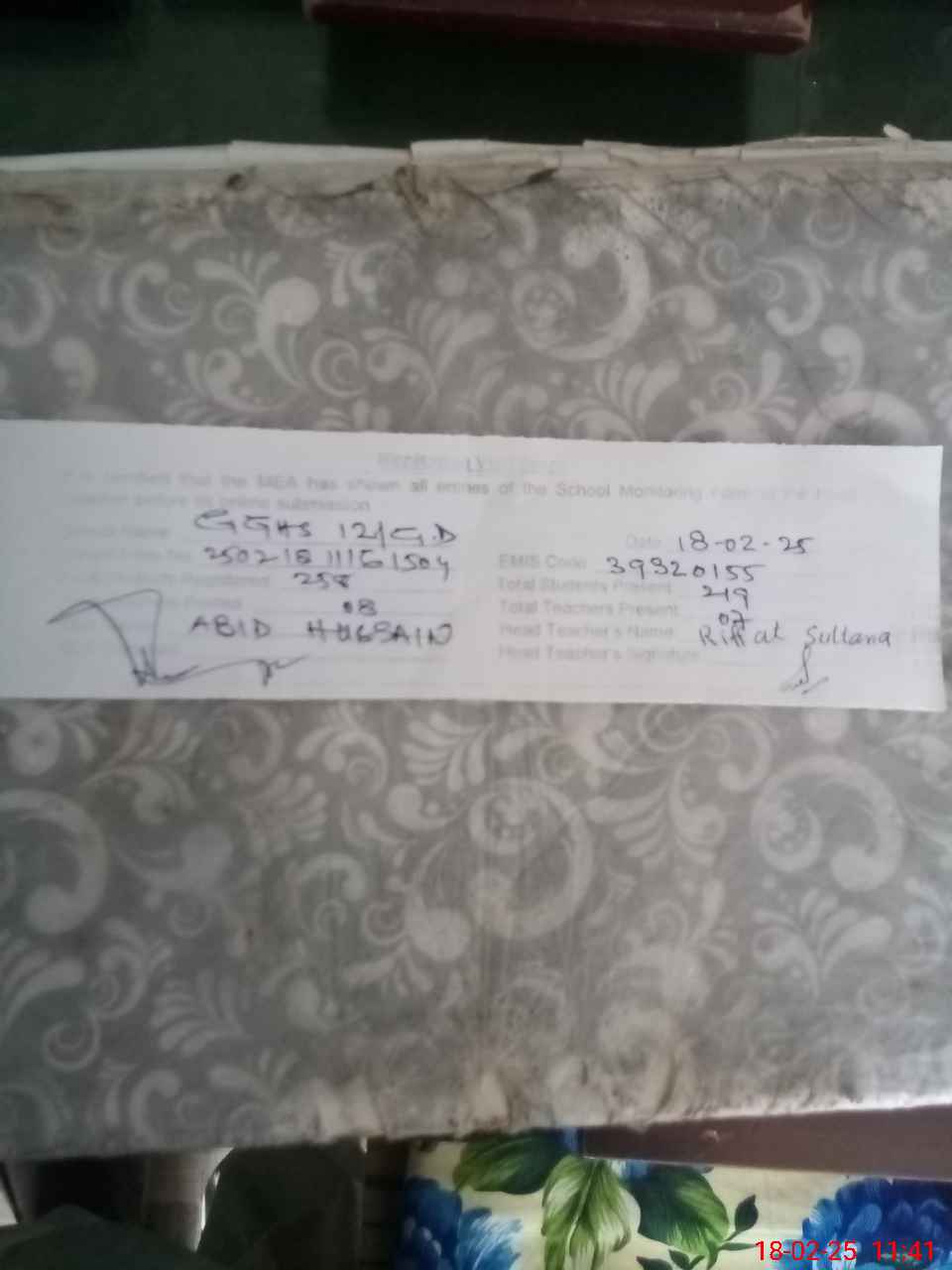 | EMIS Code: 39320155 | Name of School: GGHS 12/G.D | |||