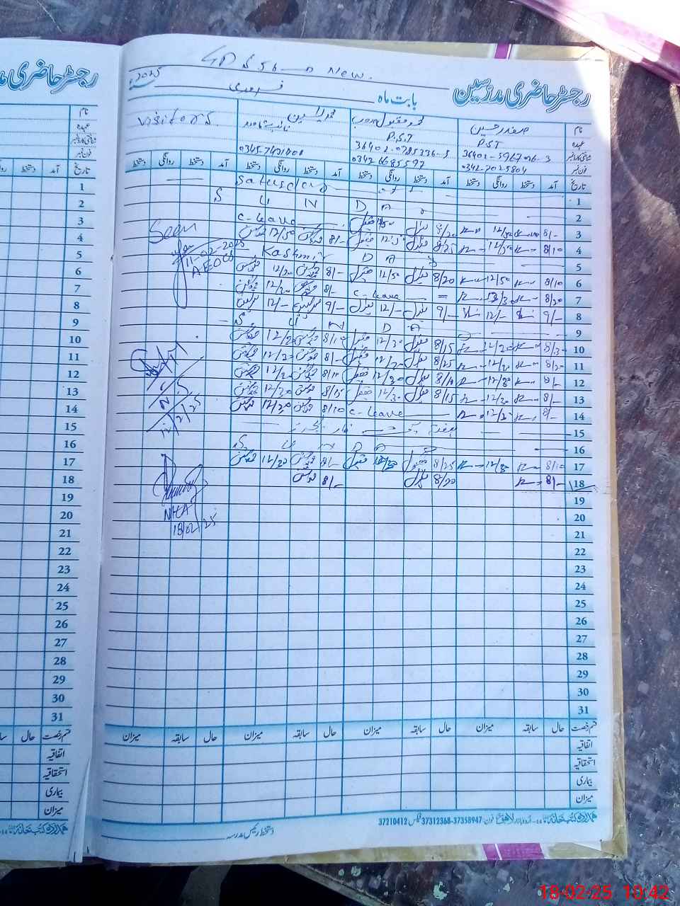 | CNIC | Full Name | Designation | R/C | Absence During Last Calender Month |