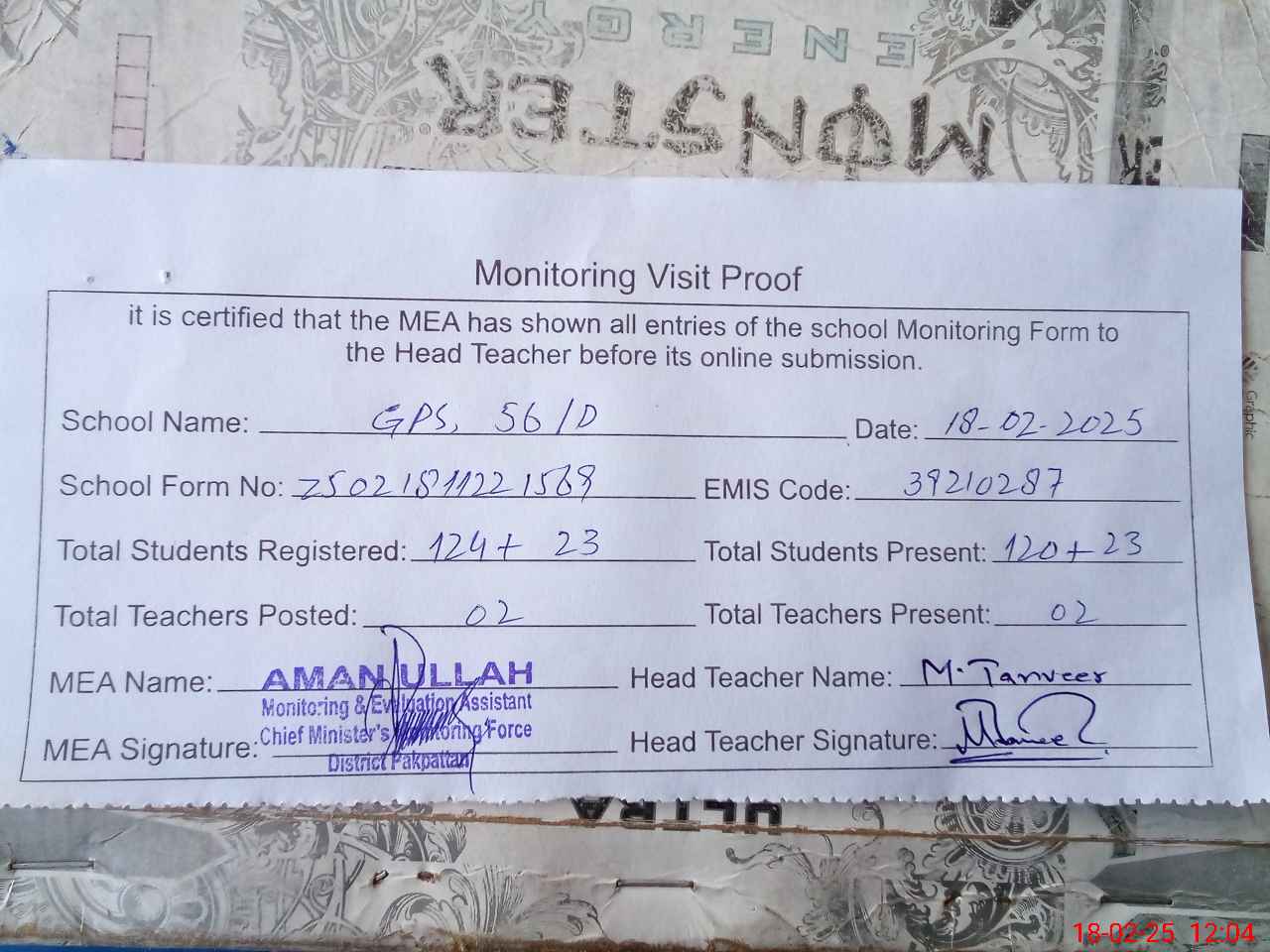 | EMIS Code: 39210287 | Name of School: GPS 56/D | |||