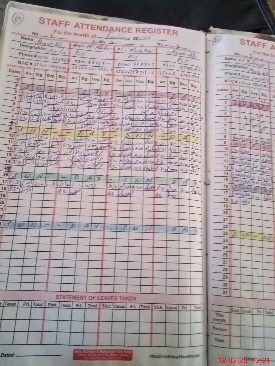 | Name: SH**** AL**** Designation: (School Headmaster's/Headmistress's) PST Phone/Cell Number: 03**** |