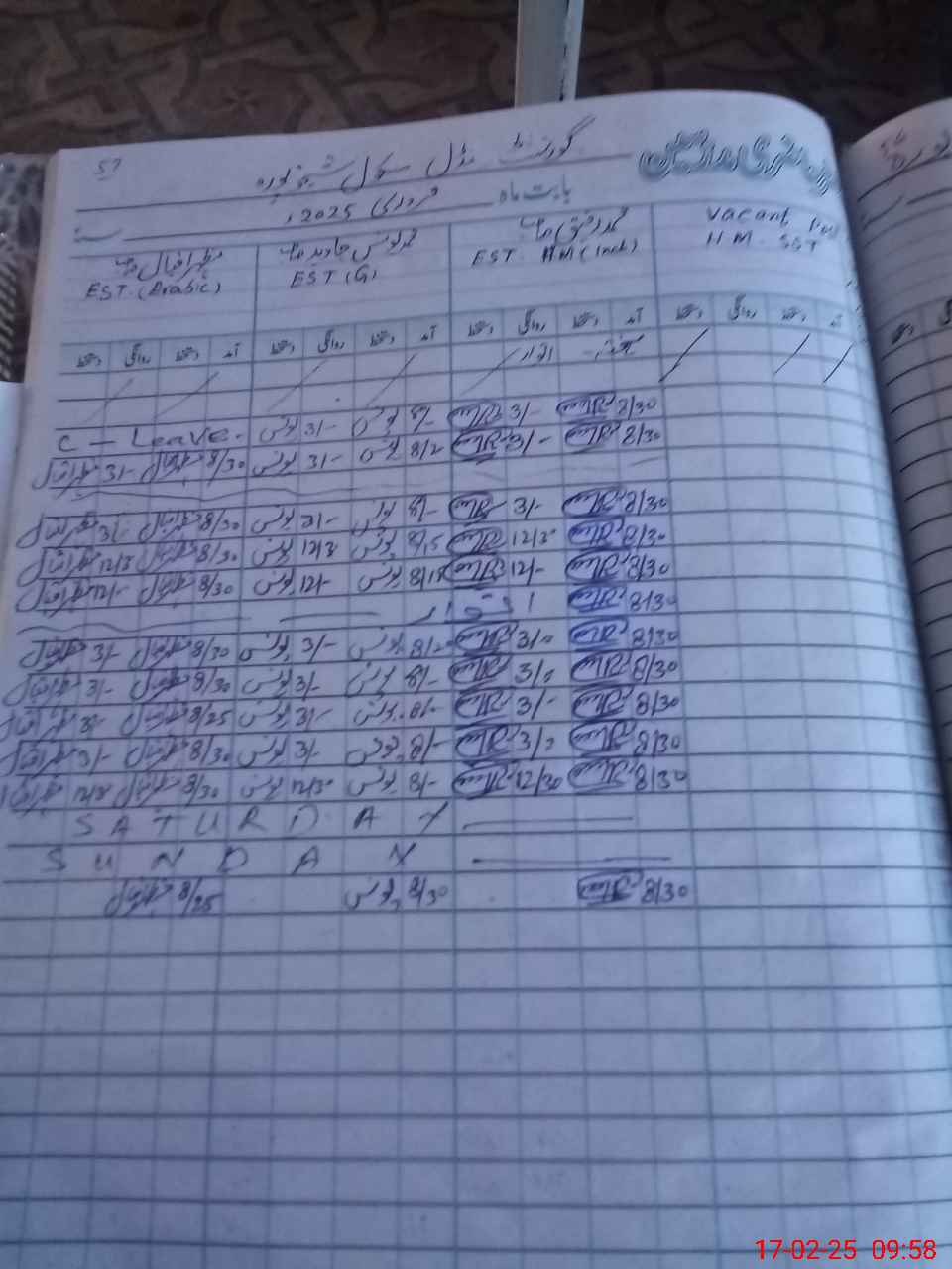| CNIC | Full Name | Designation | R/C | Absence During Last Calender Month |