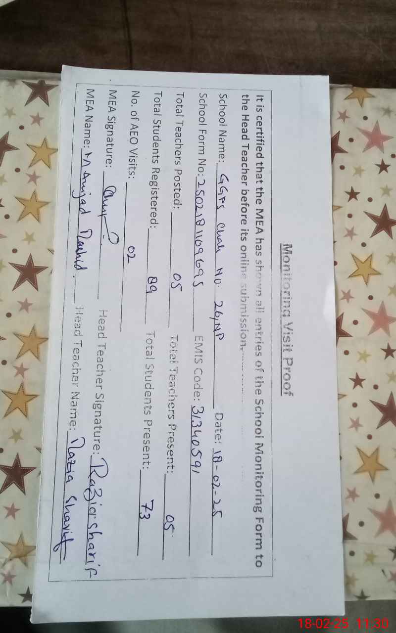 | EMIS Code: 31340591 | Name of School: GGPS CHAK NO. 26/NP | |||