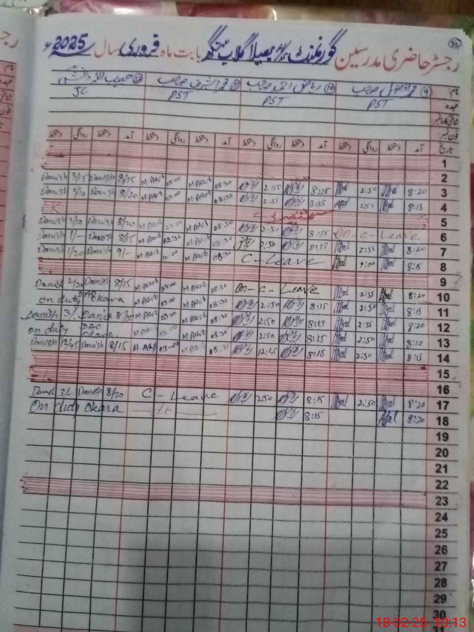 | CNIC | Full Name | Designation | R/C | Absence During Last Calender Month |