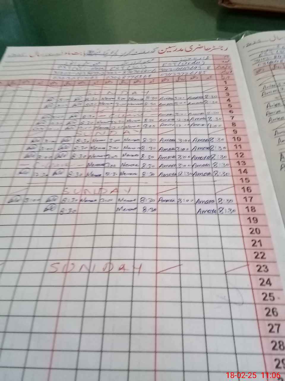 | CNIC | Full Name | Designation | R/C | Absence During Last Calender Month |