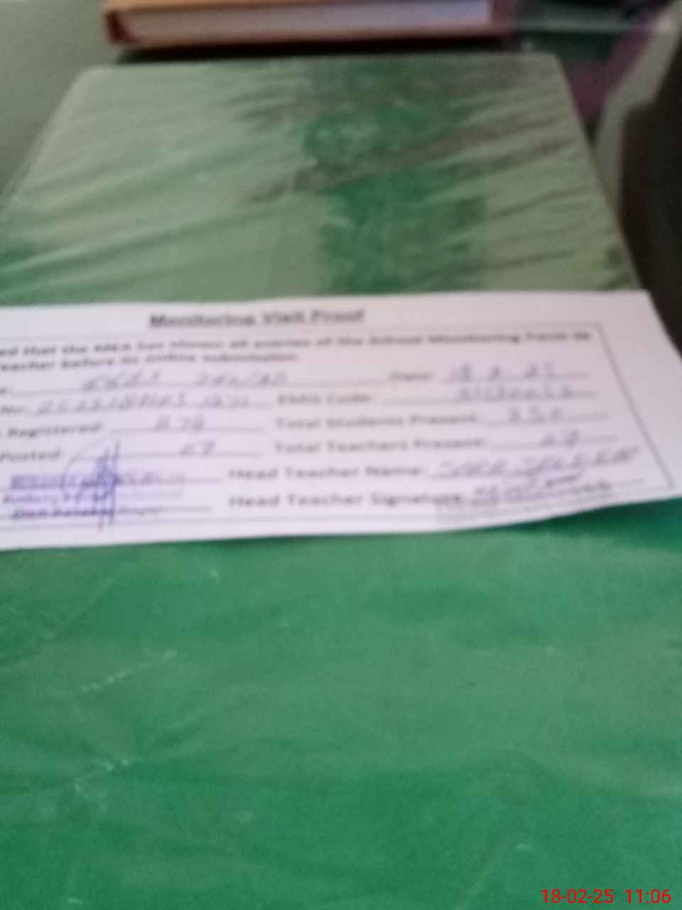 | Attendance Register | Head Teacher | MEA with School | Visit Proof |