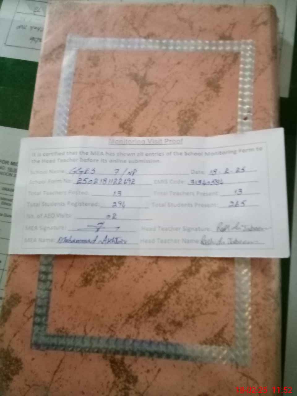 | EMIS Code: 31340584 | Name of School: GGES CHAK NO.7/NP | |||