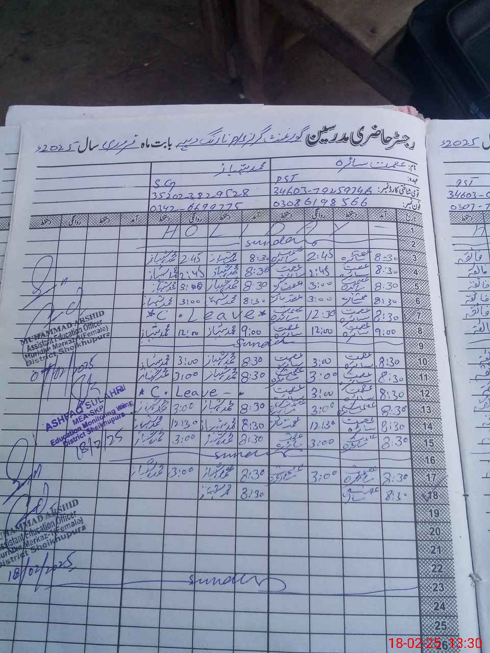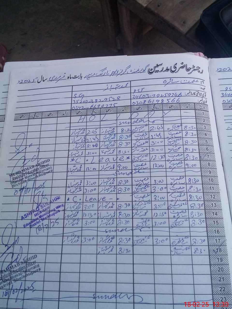 | Name: AS**** SH**** Designation: (School Headmaster's/Headmistress's) PST Phone/Cell Number: 03**** |