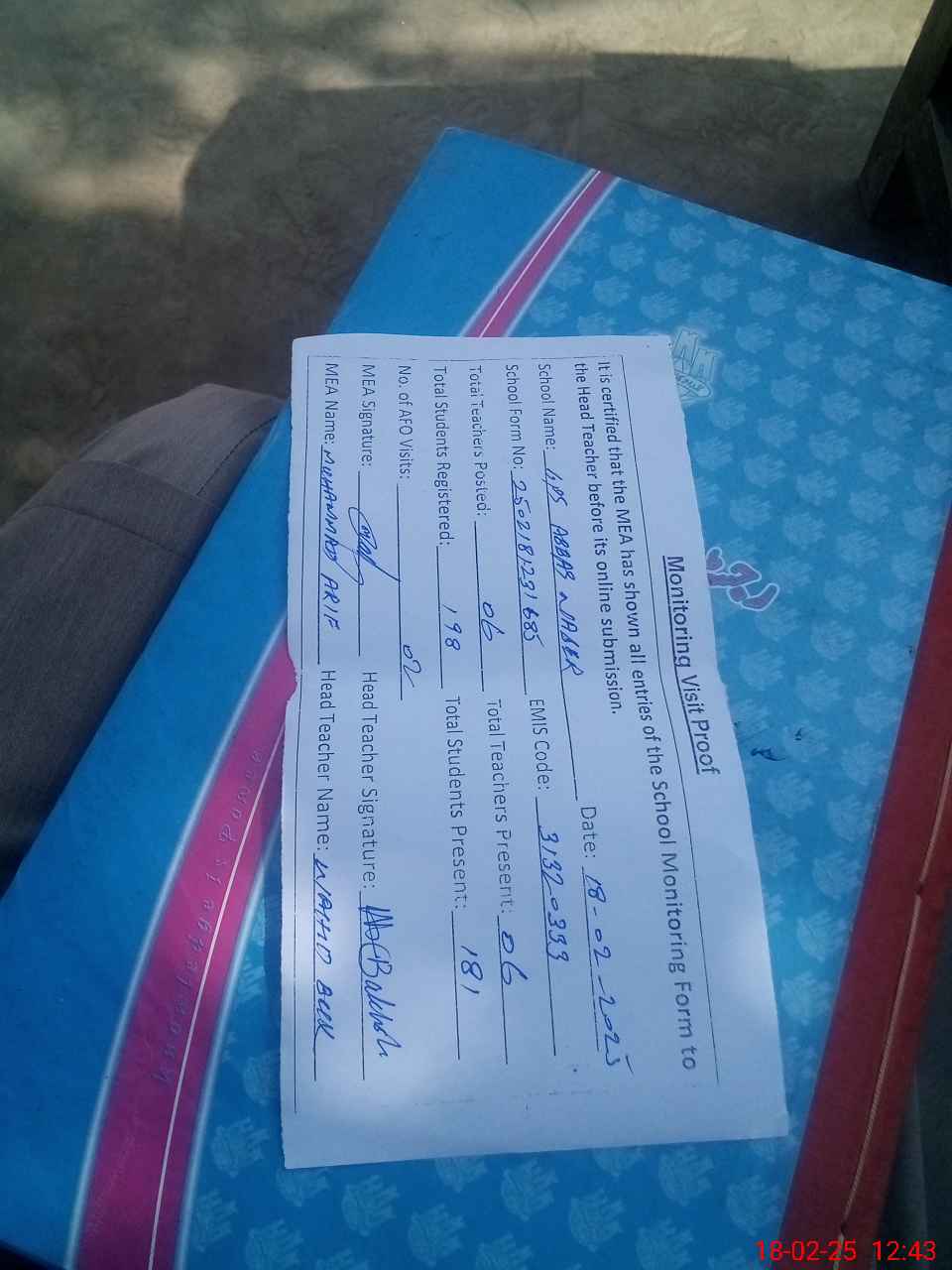 | EMIS Code: 31320333 | Name of School: GPS ABAAS NAGAR | |||