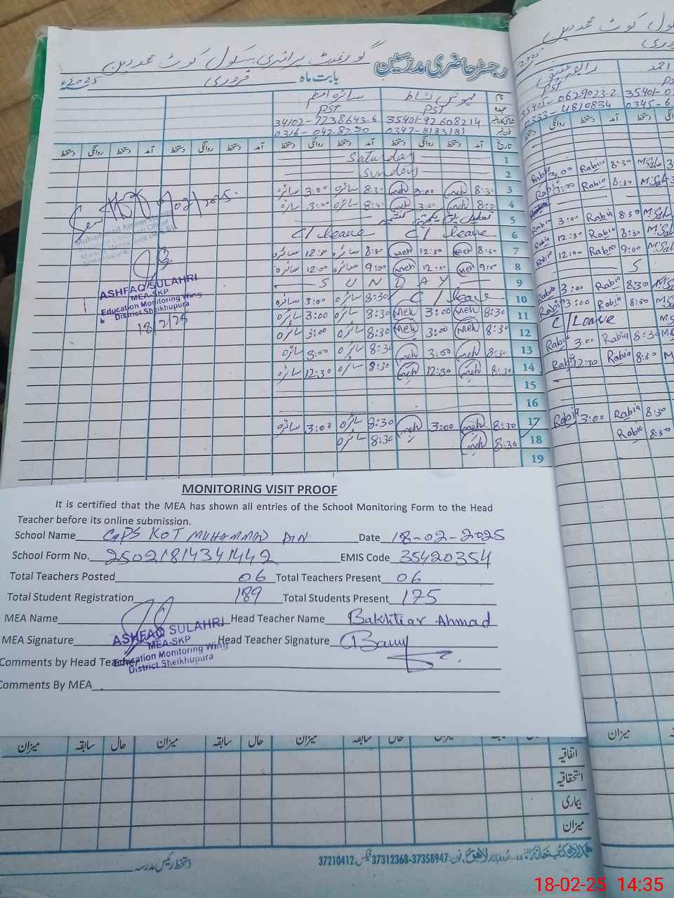 | EMIS Code: 35420354 | Name of School: GPS KOT MUHAMMAD DIN | |||