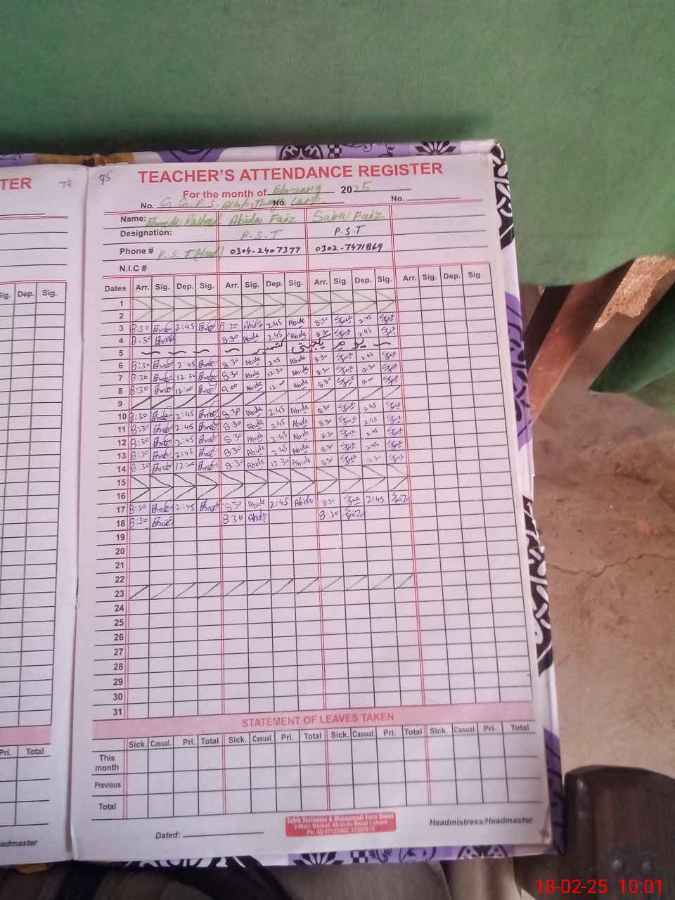 | Name: FA**** RA**** Designation: (School Headmaster's/Headmistress's) PST/PTC/JV Phone/Cell Number: 03**** |
