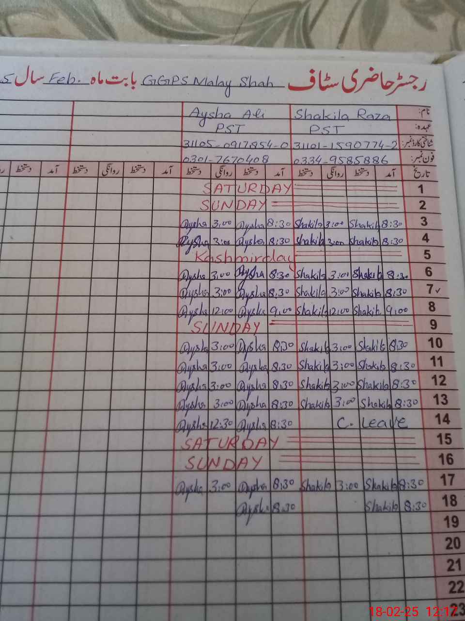 | Name: Ay**** Al**** Designation: (School Headmaster's/Headmistress's) PST Phone/Cell Number: 03**** |