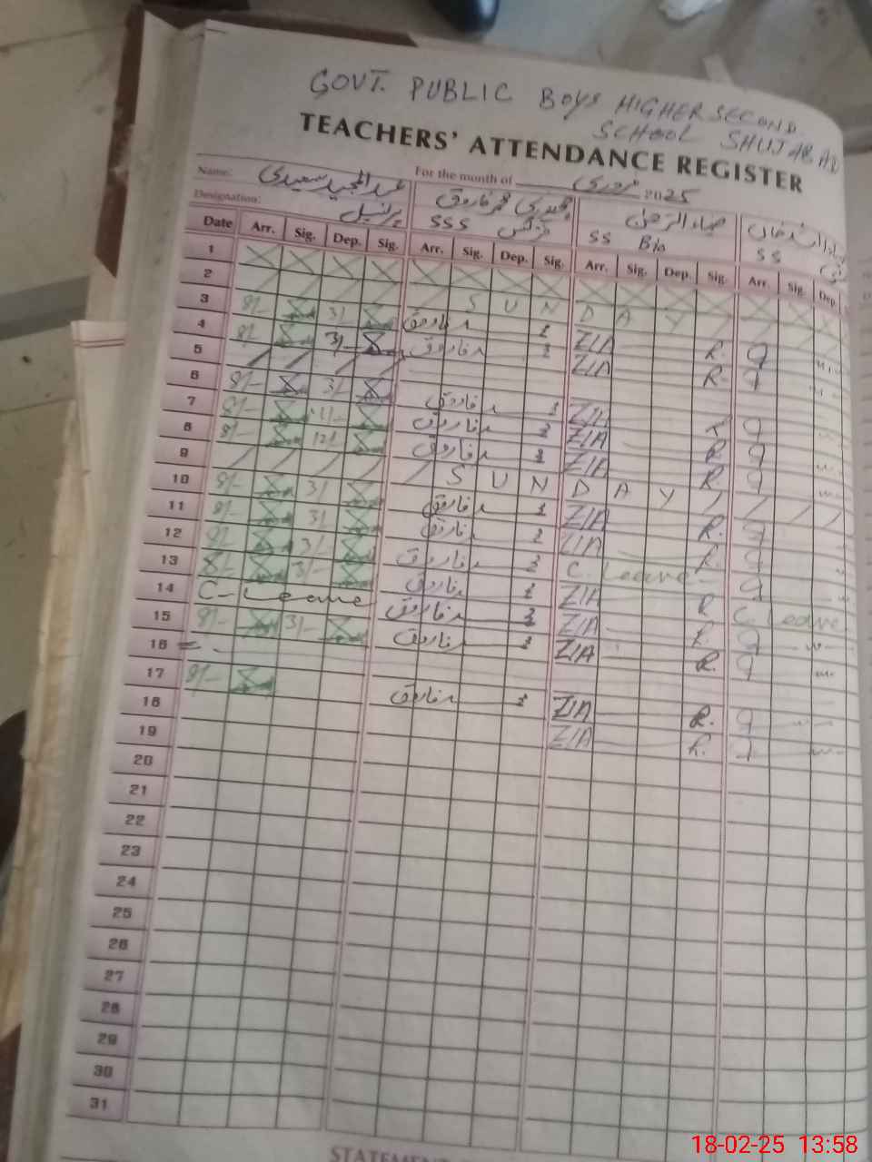 | 36**** | Zi**** Ul**** Kh**** Ha**** | Regular | 1 | 0 | 0 | 0 | 0 | 0 | 0 | 0 | 1 | Absent (Un-Authorized) | |