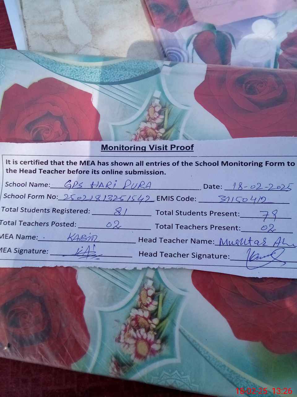 | EMIS Code: 31150412 | Name of School: GPS HARI PURA | |||