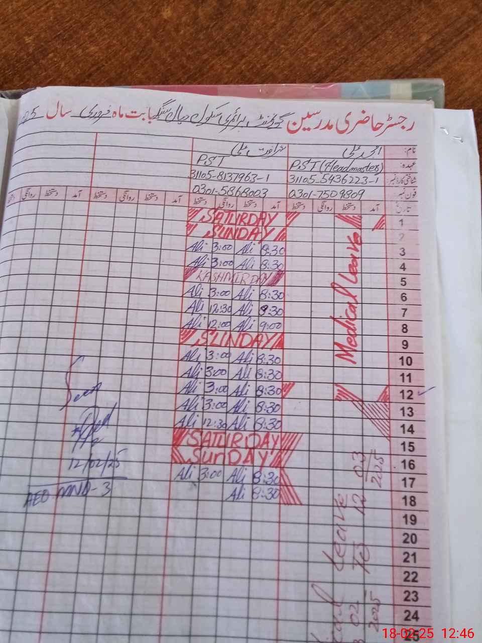 | Name: AM**** AL**** Designation: (School Headmaster's/Headmistress's) PST Phone/Cell Number: 03**** |