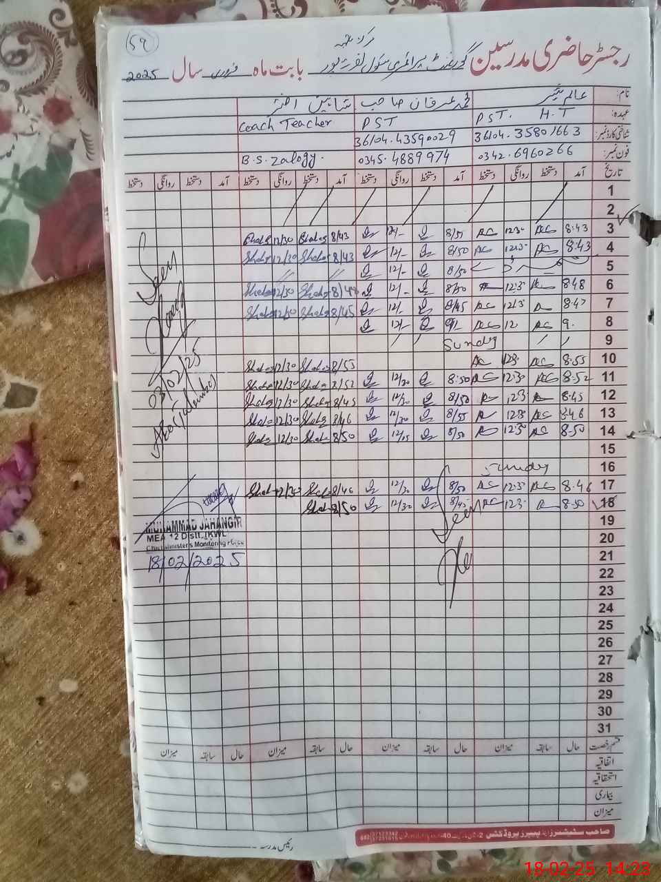 | Name: AL**** SH**** Designation: (School Headmaster's/Headmistress's) PST Phone/Cell Number: 03**** |
