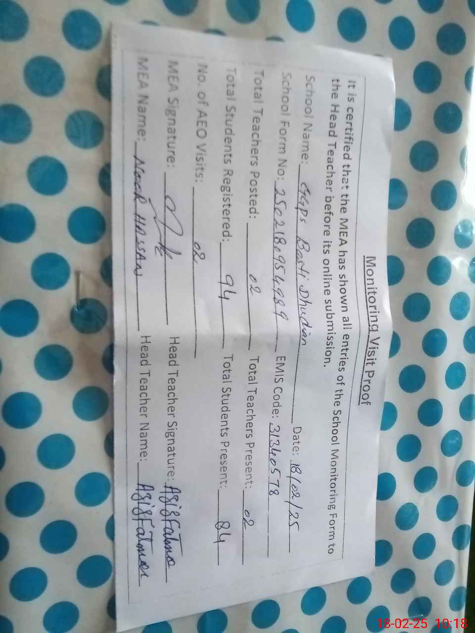 | EMIS Code: 31340578 | Name of School: GGPS BASTI DHUDIAN | |||