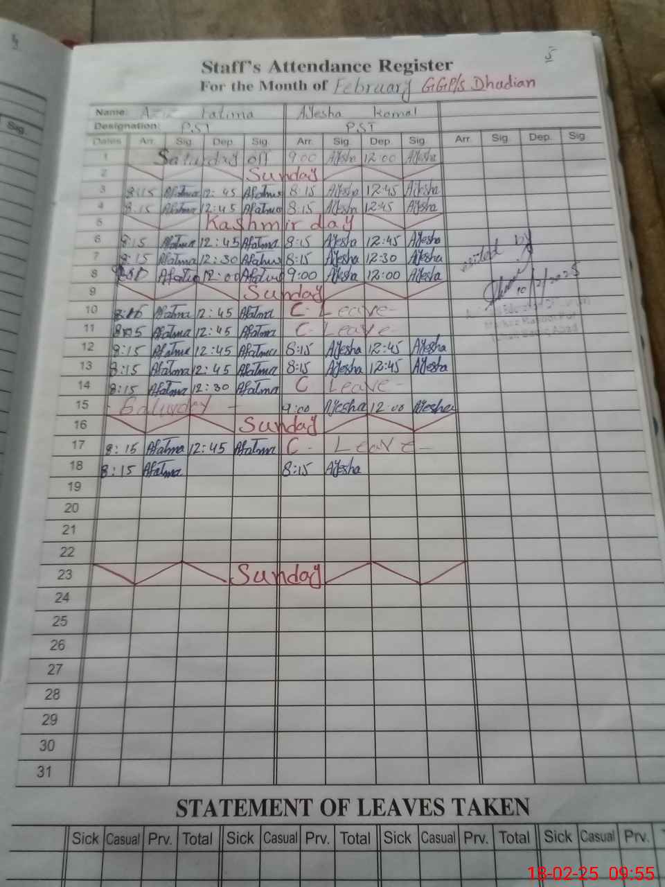 | Name: AZ**** FA**** Designation: (School Headmaster's/Headmistress's) PST Phone/Cell Number: 03**** |