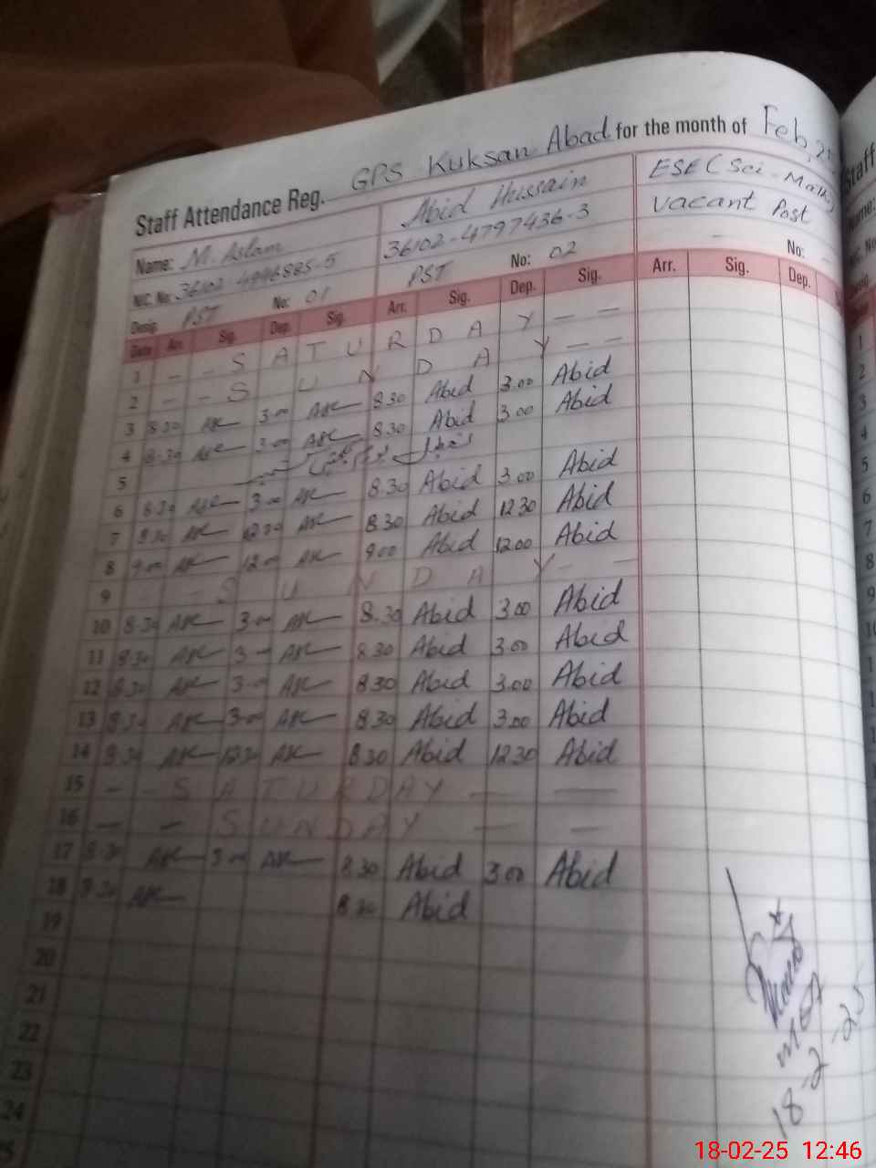 | Name: MAS**** Designation: (School Headmaster's/Headmistress's) PST/PTC/JV Phone/Cell Number: 03**** |