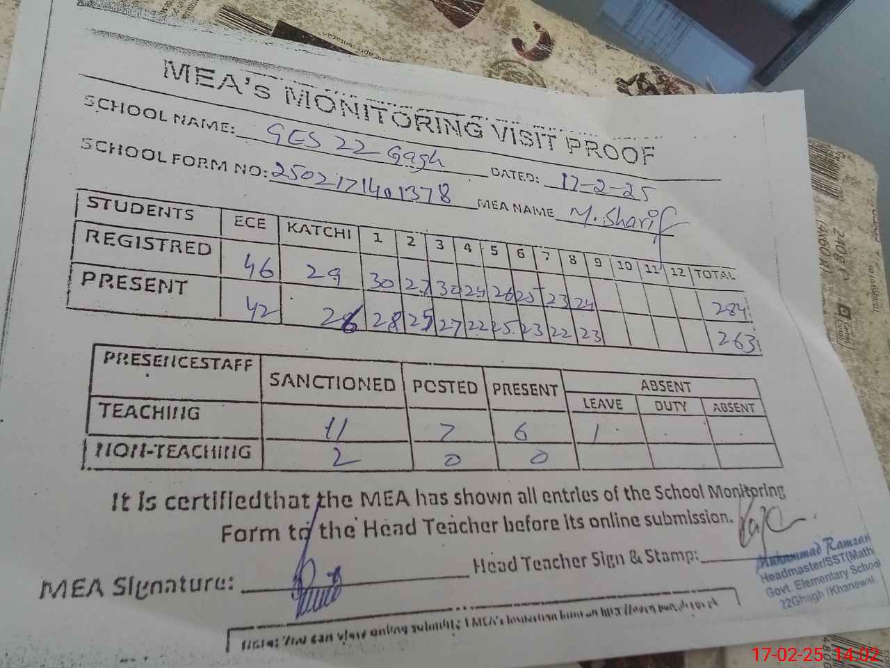 | EMIS Code: 36410082 | Name of School: GES 22 GHAGH, P/O 25 PUL, ABDUL HAKIM | |||