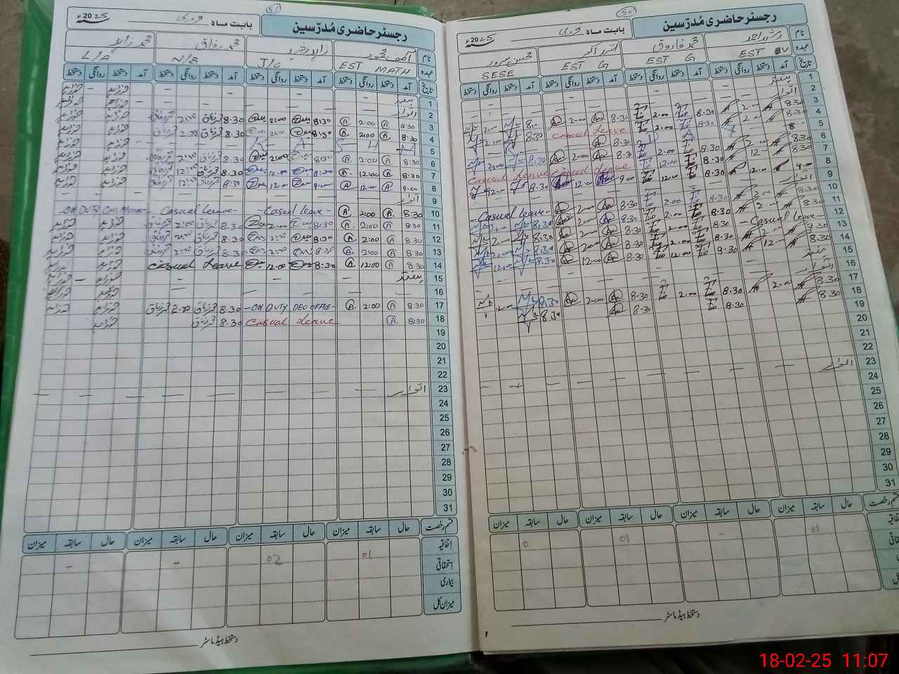 | CNIC | Full Name | Designation | R/C | Absence During Last Calender Month |