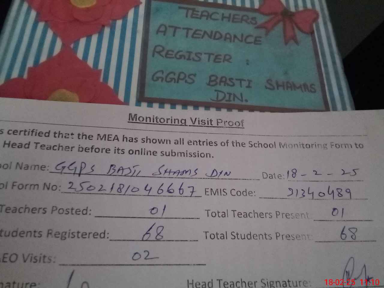 | EMIS Code: 31340489 | Name of School: GGPS BASTI SHAMAS DIN | |||