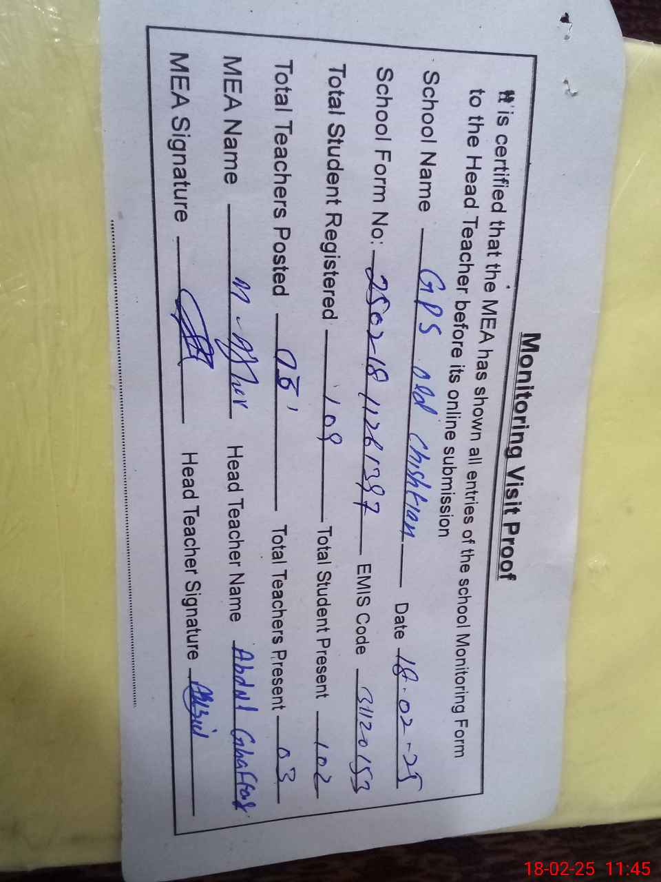 | EMIS Code: 31120153 | Name of School: GPS OLD CHISHTIAN NO. 2 | |||