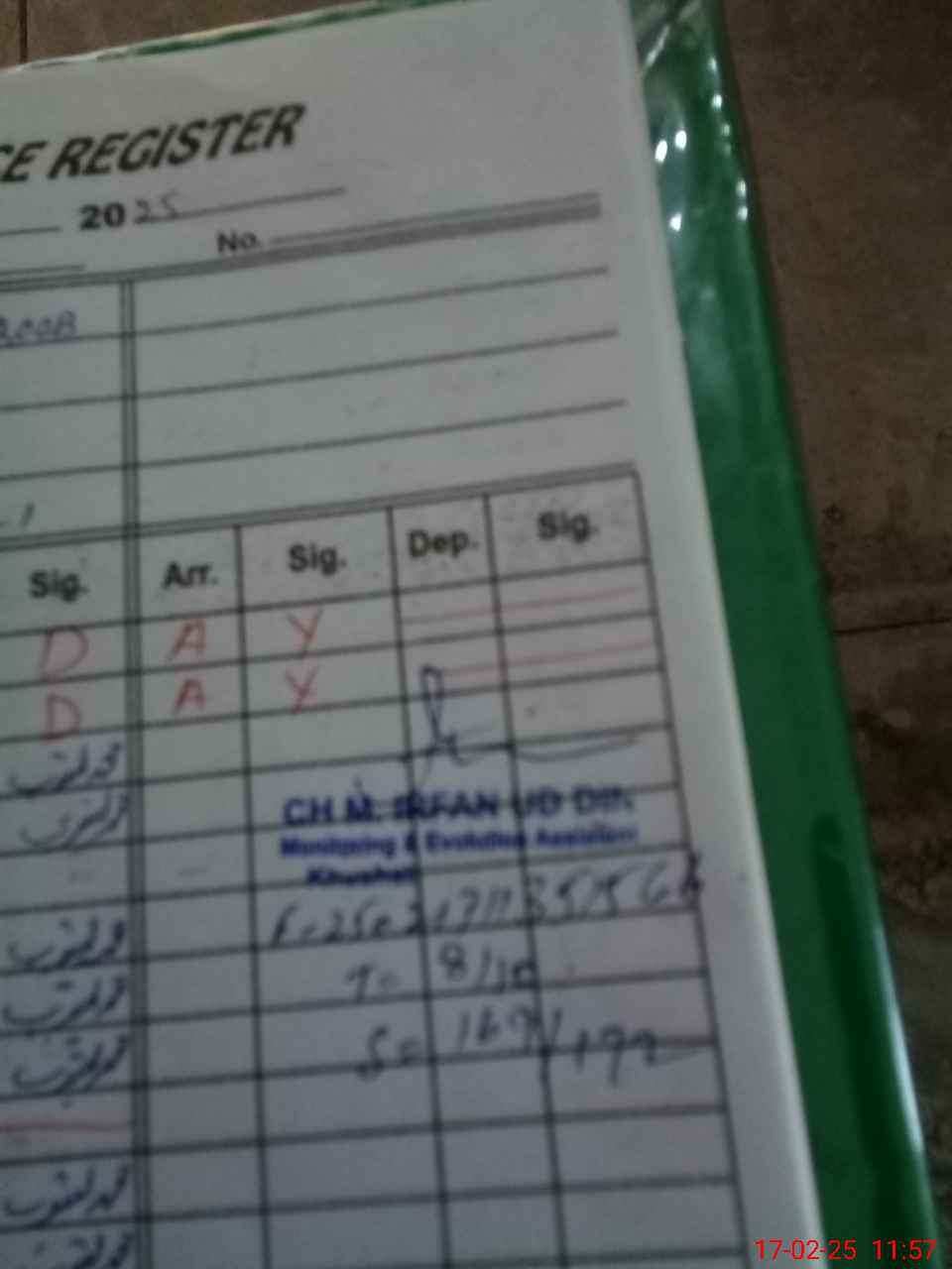 | CNIC | Full Name | Designation | R/C | Absence during last cal. month |