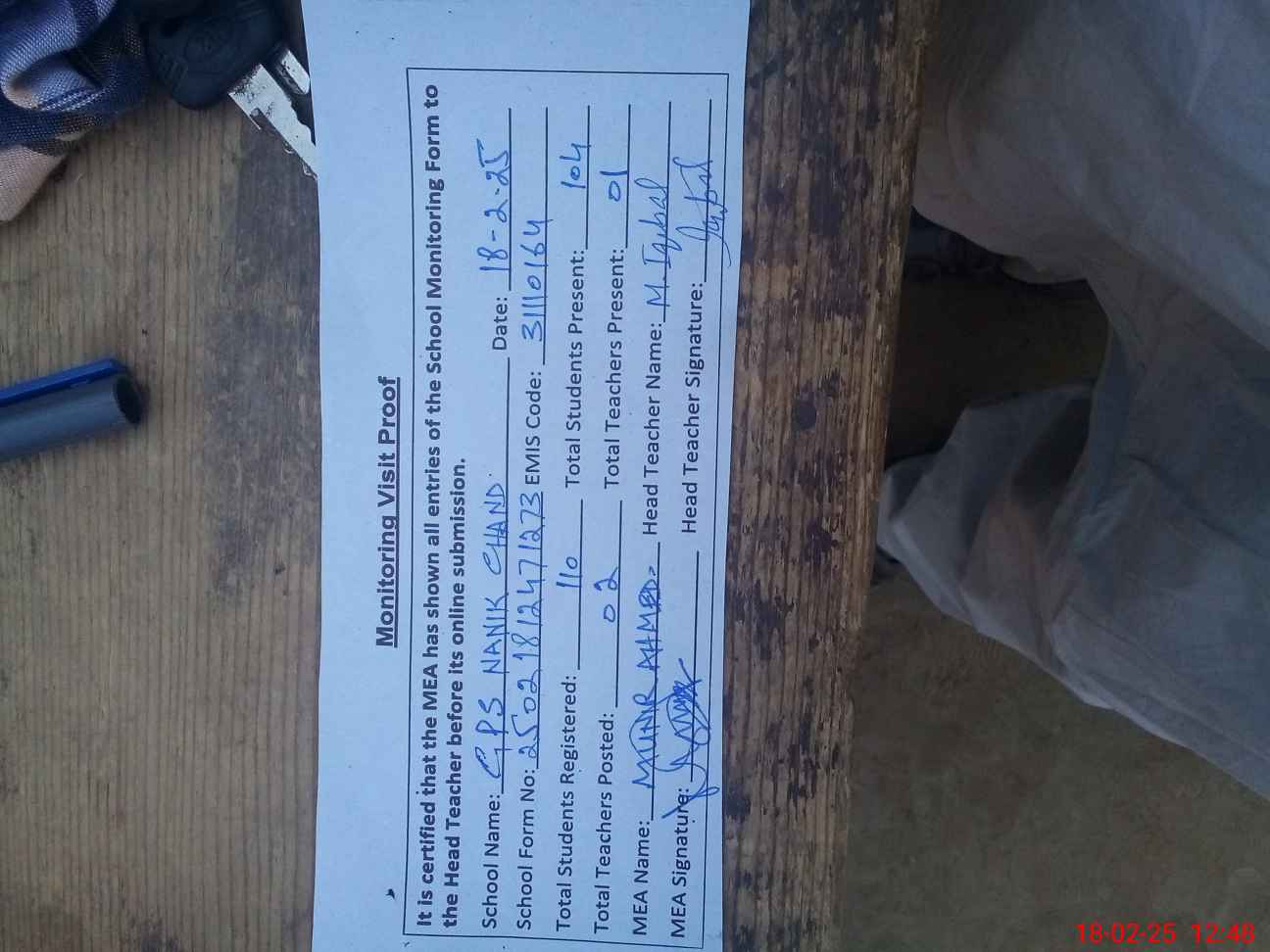 | EMIS Code: 31110164 | Name of School: GPS NANIK CHAND | |||