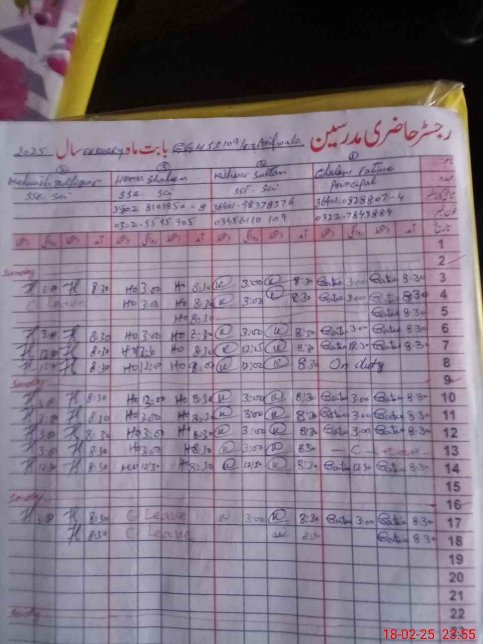 | Name: GH**** FA**** Designation: (School Headmaster's/Headmistress's) HT Phone/Cell Number: 03**** |