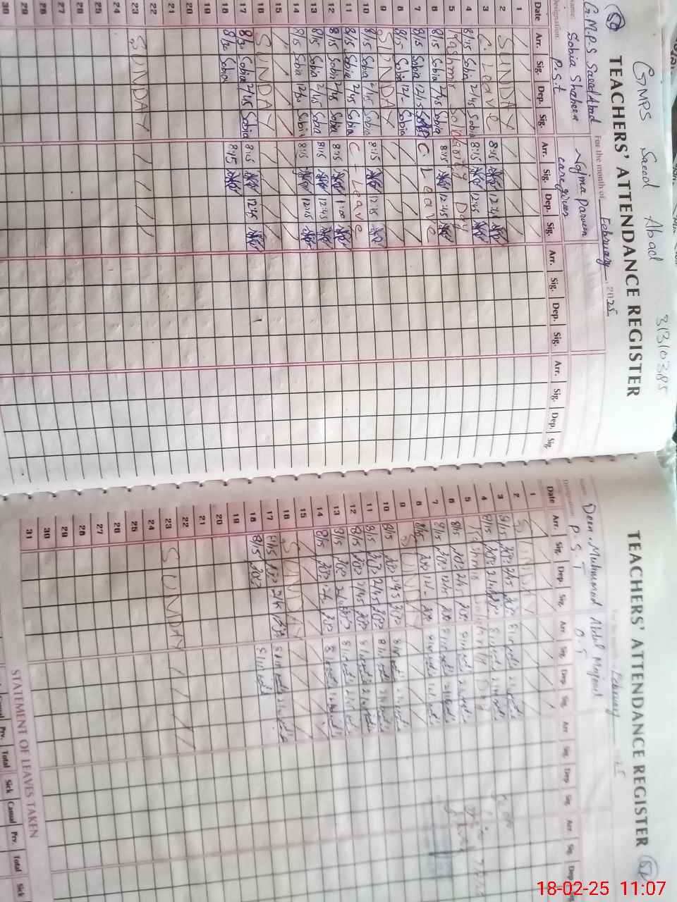 | Leave | Duty | Absent | Maternity | Medical | Ex- Pak |
