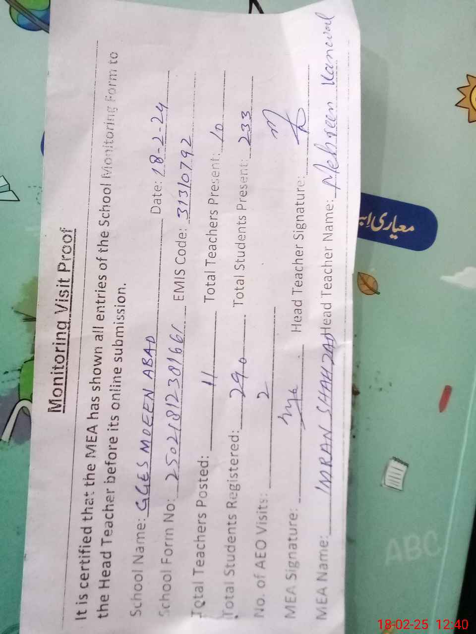 | EMIS Code: 31310792 | Name of School: GGES MOEEN ABAD | |||