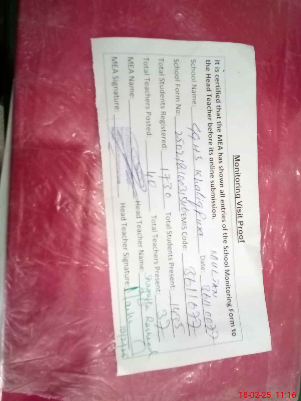 | EMIS Code: 36110077 | Name of School: GGHS KHALIQUE PURA KHALIQUE PURA | |||
