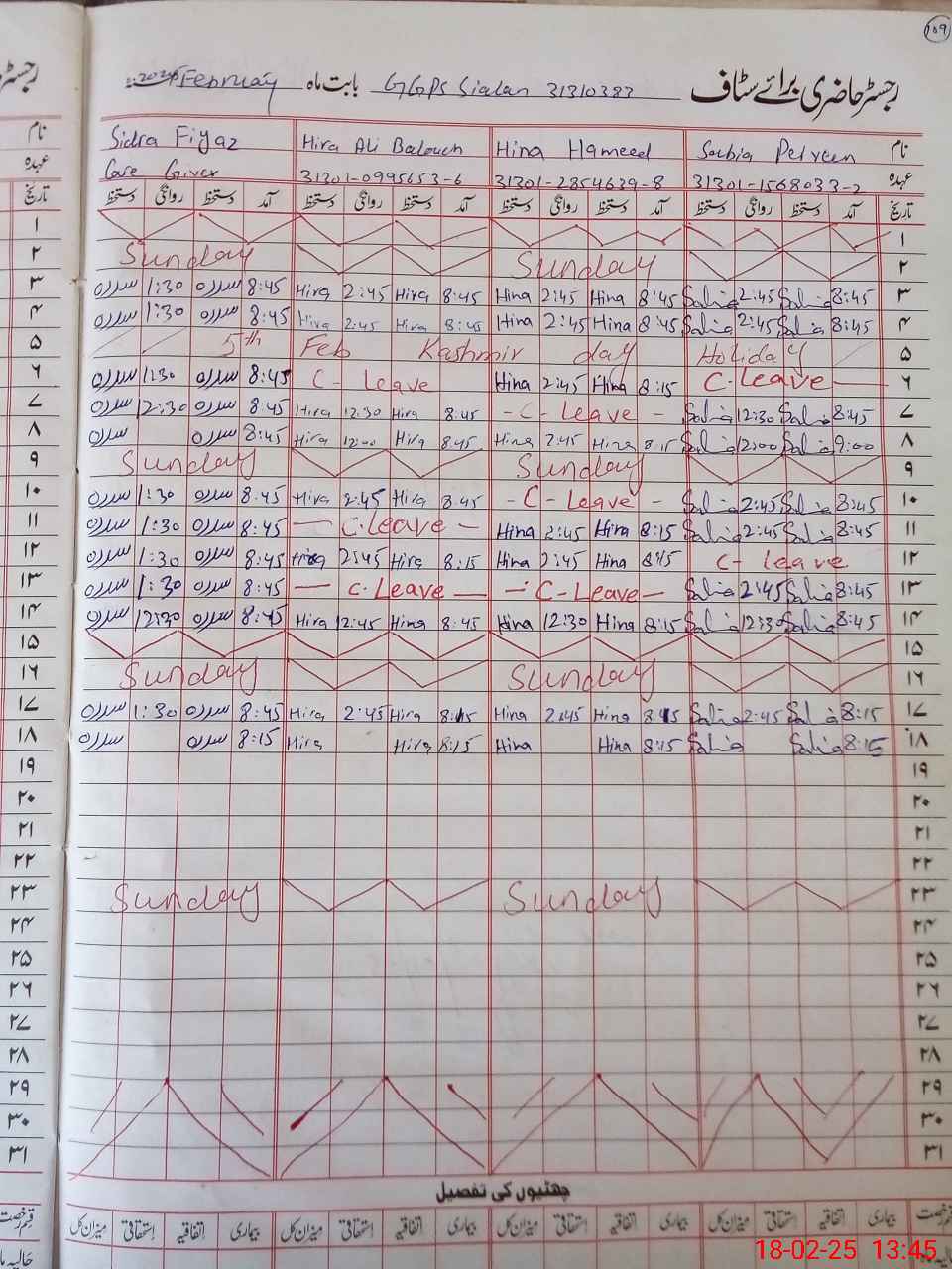 | CNIC | Full Name | Designation | R/C | Absence During Last Calender Month |