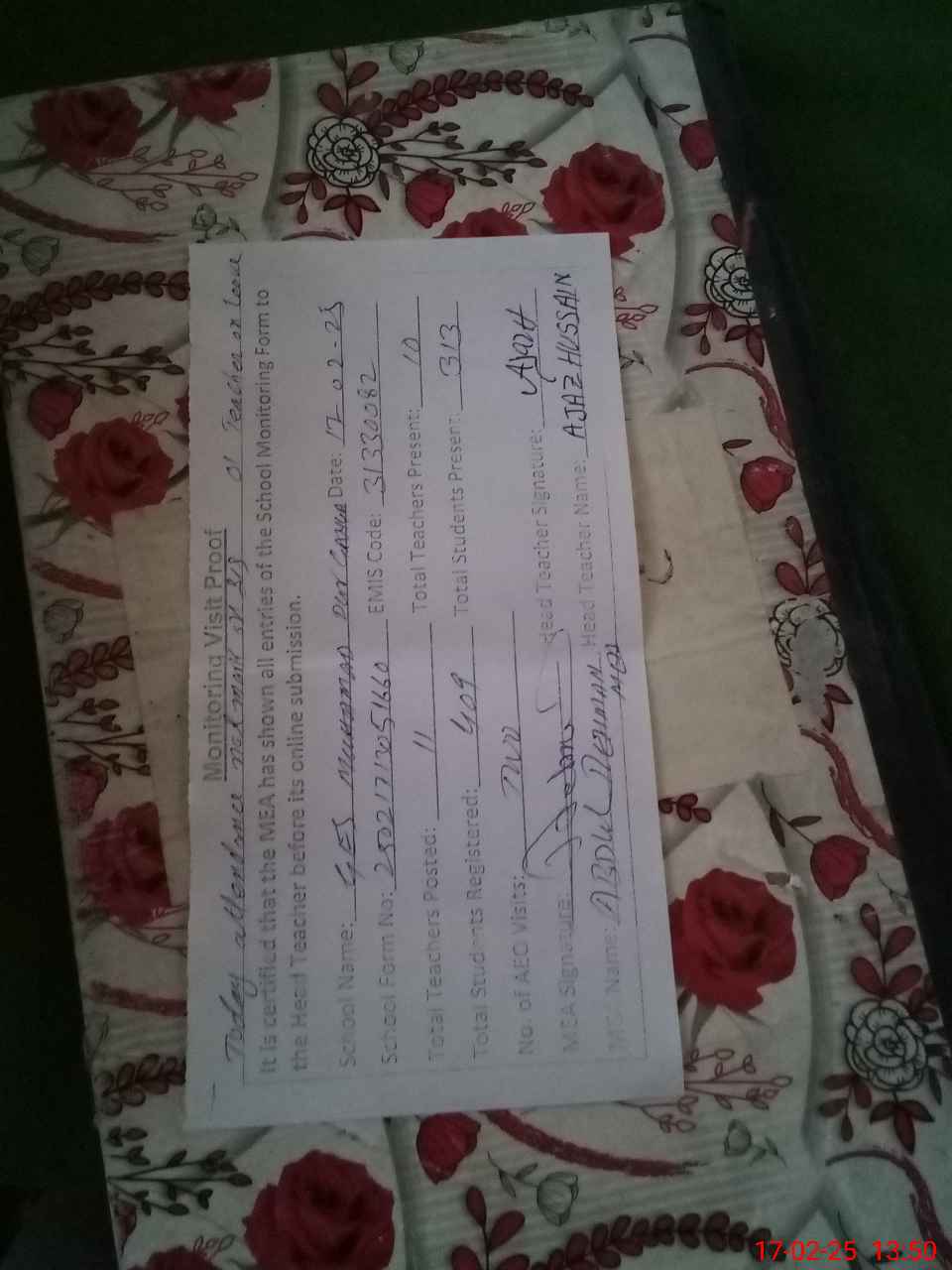 | Certified that this School was Inspected by the Undersigned MEA/DMO Today and the Information Stated Above is as Per Record. | |||||